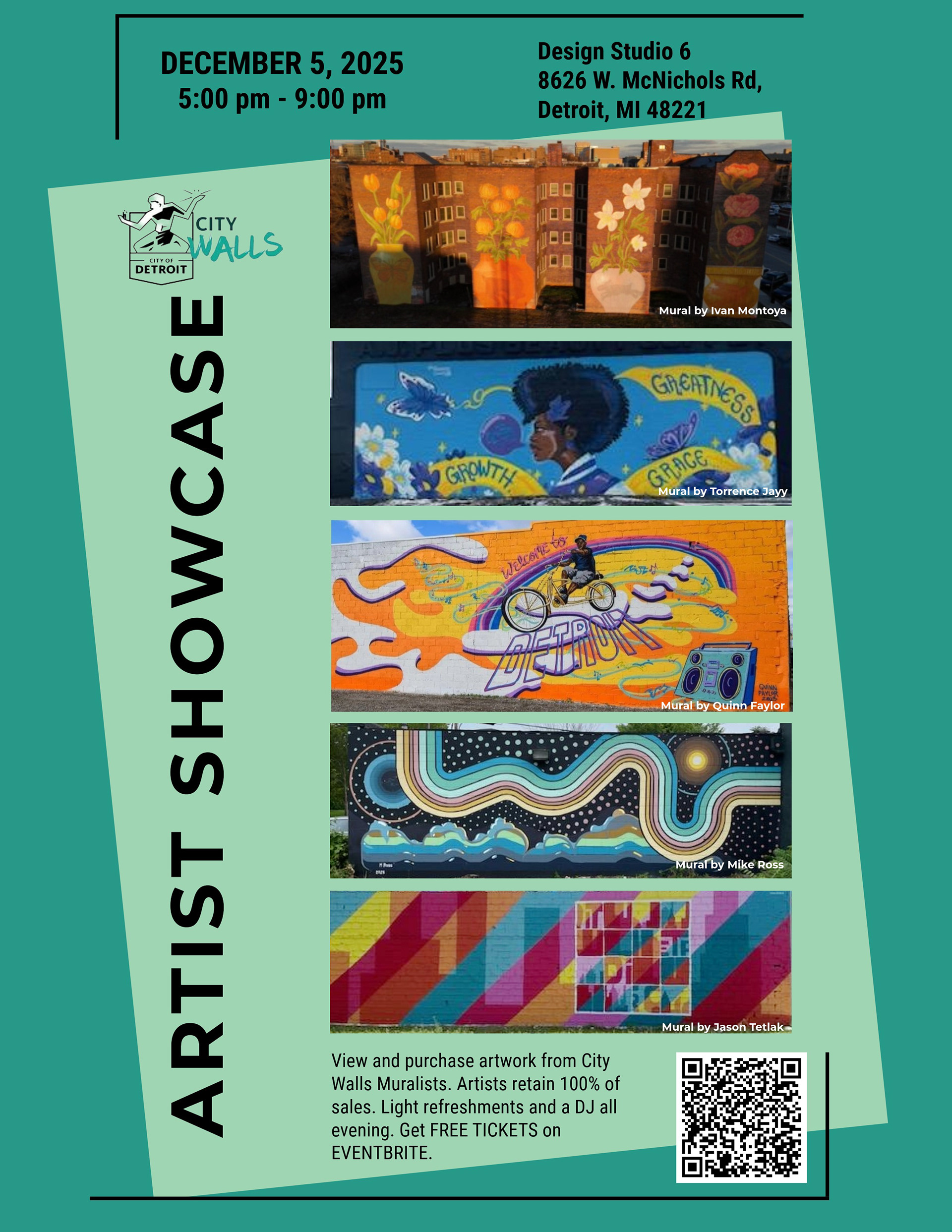 Join us in celebrating the 6th Season of City Walls Detroit! Over 30 talented mural artists will showcase and sell their original artwork.